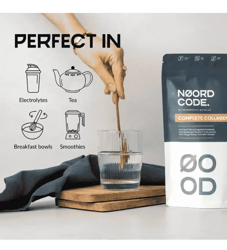 NoordCode Complete Collagen Orange contient une saveur naturelle d'orange. Cela donne à la poudre de collagène une saveur rafraîchissante d'orange pour les boissons et les repas. Cette saveur se marie bien avec de l'eau, du thé ou des smoothies.