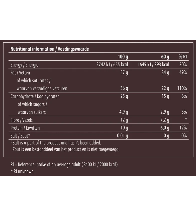 Alors que la variante biologique a été testée pour détecter la présence de métaux lourds, de mycotoxines et de moisissures, le nouveau cacao a également été testé pour détecter la présence de pesticides. Nous vous garantissons ainsi que vous pouvez continuer à profiter d'un chocolat pur et puissant, avec le même goût familier et la même valeur fonctionnelle. Sans label, mais avec une promesse de qualité.